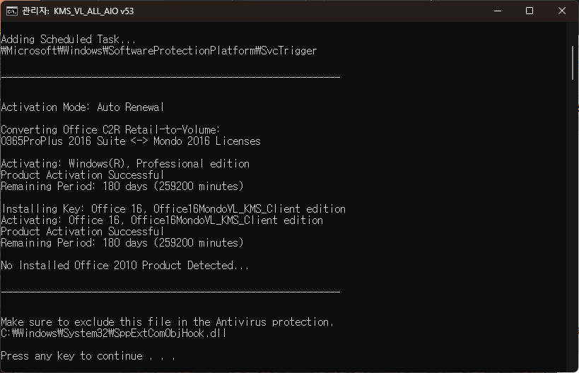 소프트웨어를 사용할 때 일부 보안 프로그램이 KMS 에뮬레이터를 감염된 파일로 인식할 수 있습니다. 따라서 실시간 바이러스 백신 보호를 일시 중단하거나 다운로드한 파일을 제외하는 것이 좋습니다. 격리를 방지하기 위해 해당 항목은 검사에서 제외해야 합니다.